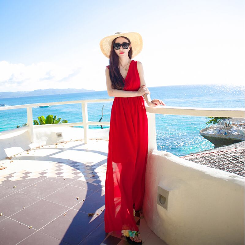 赤と白のきれいなビーチドレス