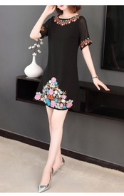 黒をベースに襟元 袖口 裾にお花の刺繡がチャームポイント